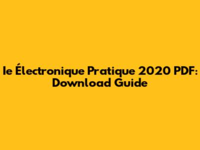 Ie Électronique Pratique 2020 PDF: Download Guide
