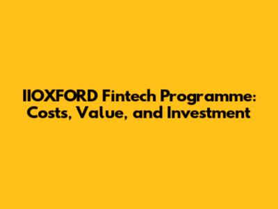 IIOXFORD Fintech Programme: Costs, Value, And Investment