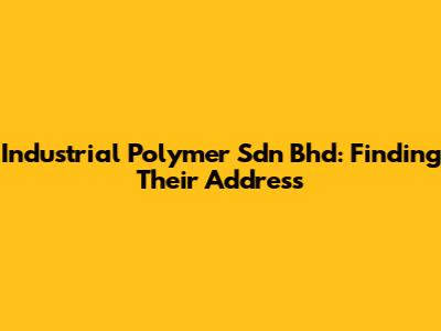 Industrial Polymer Sdn Bhd: Find Their Address
