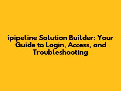 Ipipeline Solution Builder: Login, Access, And Troubleshooting
