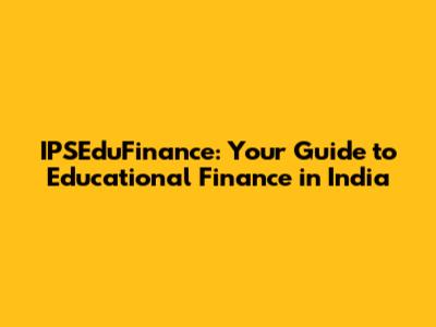 IPSEduFinance: Your Guide To Educational Finance In India