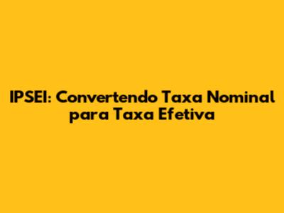 IPSEI: Convertendo Taxa Nominal Para Taxa Efetiva