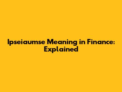 Ipseiaumse Meaning In Finance: Explained