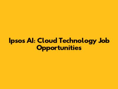 Ipsos AI: Cloud Technology Job Opportunities