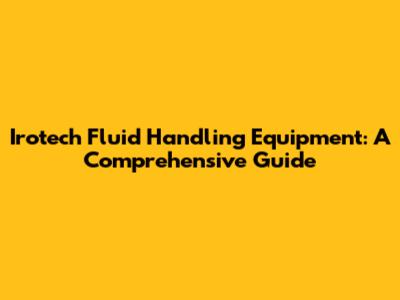 Irotech Fluid Handling Equipment: A Comprehensive Guide