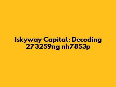 Iskyway Capital: Decoding 273259ng Nh7853p