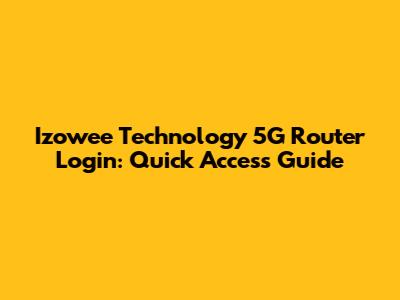 Izowee Technology 5G Router Login: Quick Access Guide