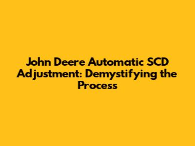 John Deere Automatic SCD Adjustment: A Comprehensive Guide