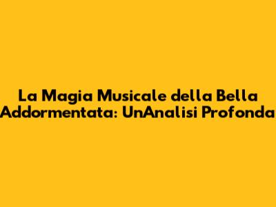 La Magia Musicale Della Bella Addormentata: Un'Analisi Profonda