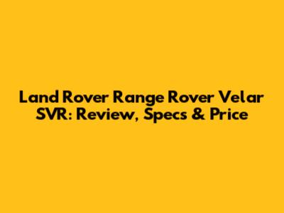 Land Rover Range Rover Velar SVR: Review, Specs & Price