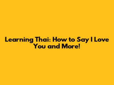 Learning Thai: How To Say 'I Love You' And More!