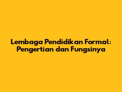 Lembaga Pendidikan Formal: Pengertian Dan Fungsinya