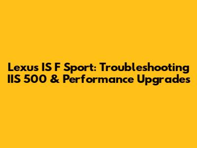 Lexus IS F Sport: Troubleshooting IIS 500 & Performance Upgrades