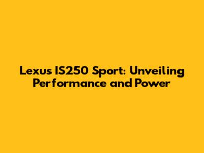 Lexus IS250 Sport: Unveiling Performance And Power