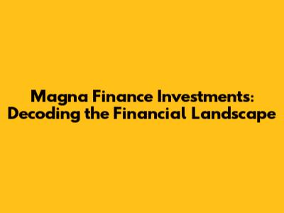 Magna Finance Investments: Decoding The Financial Landscape