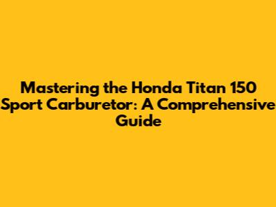 Mastering The Honda Titan 150 Sport Carburetor