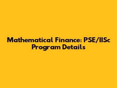 Mathematical Finance: PSE/IISc Program Details