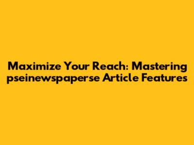 Maximize Your Reach: Mastering Pseinewspaperse Article Features