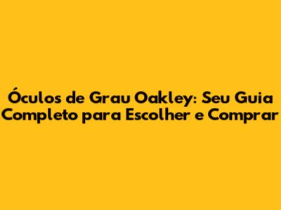 Óculos de grau Oakley são muito mais do que um acessório para correção visual; eles são uma declaração de estilo, performance e tecnologia. Se você está pensando em adquirir um óculos de grau Oakley, este guia completo vai te ajudar a navegar por todas as opções, desde a escolha da armação perfeita até dicas de compra e cuidados. Prepare-se para descobrir tudo sobre os óculos de grau Oakley e como eles podem transformar seu visual e sua experiência visual!