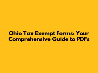 Hey guys! Navigating the world of taxes can sometimes feel like trying to solve a Rubik's Cube blindfolded, right? Especially when you throw in the complexities of tax exemptions. But don't sweat it! If you're looking for information on Ohio tax exempt forms and how to access them in PDF format, you've come to the right place. This guide is designed to break down everything you need to know, making the process as smooth as possible. We'll cover the basics, delve into specific form types, and give you the lowdown on where to find the official documents you need. Let's dive in and demystify those Ohio tax exemptions!