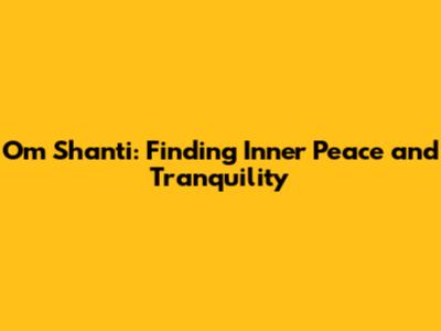 Om Shanti: Finding Inner Peace And Tranquility