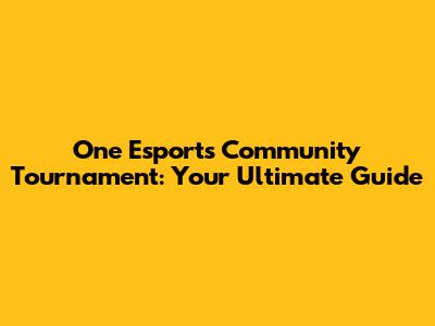 One Esports Community Tournament: Your Ultimate Guide