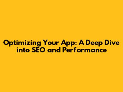 Optimizing Your App: A Deep Dive Into SEO And Performance