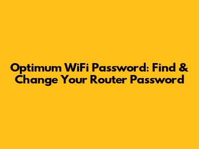 Optimum WiFi Password: Find & Change Your Router Password