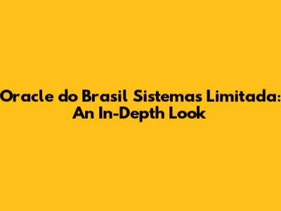 Hey guys! Ever heard of Oracle do Brasil Sistemas Limitada? If you're in the tech world, chances are you have. But if not, no worries! This article is your one-stop guide to everything you need to know about this major player in the Brazilian IT scene. We'll dive deep into what they do, their impact, and why they're so important. Buckle up, because we're about to explore the ins and outs of Oracle do Brasil!