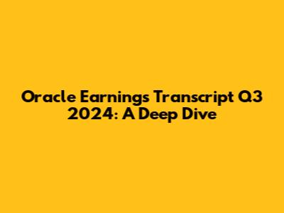 Hey guys! Let's break down the Oracle Earnings Transcript Q3 2024. We're diving deep into what was discussed, the key highlights, and what it all means for the future. Whether you're an investor, a tech enthusiast, or just curious about the financial performance of one of the world's leading tech companies, this breakdown is for you. Let's get started!