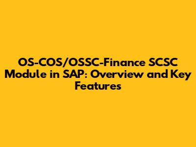 OS-COS/OSSC-Finance SCSC Module In SAP: Overview And Key Features