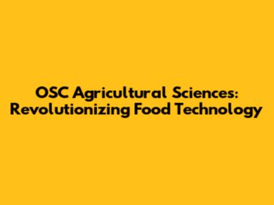 OSC Agricultural Sciences: Revolutionizing Food Technology