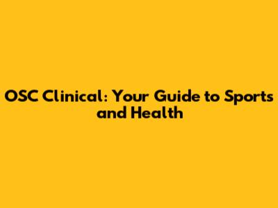 OSC Clinical: Your Guide To Sports And Health