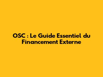 OSC : Le Guide Essentiel Du Financement Externe