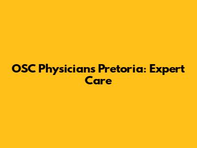 OSC Physicians Pretoria: Expert Care