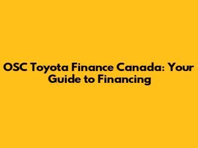 OSC Toyota Finance Canada: Everything You Need To Know