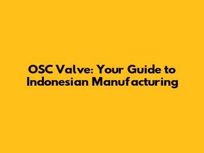 OSC Valve: Your Guide To Indonesian Manufacturing