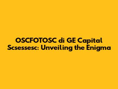 OSCFOTOSC Di GE Capital Scsessesc: A Comprehensive Guide