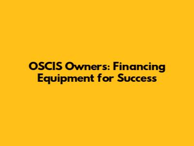 OSCIS Owners: Financing Equipment For Success