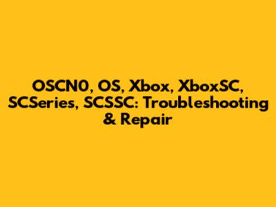 OSCN0, OS, Xbox, XboxSC, SCSeries, SCSSC: Troubleshooting & Repair
