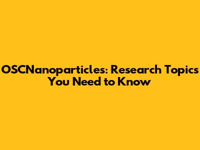 OSCNanoparticles: Research Topics You Need To Know
