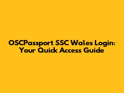 OSCPassport SSC Wales Login Guide
