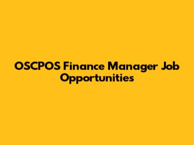 OSCPOS Finance Manager Job Opportunities