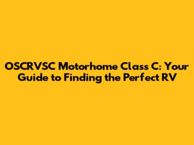 OSCRVSC Motorhome Class C: Your Guide To Finding The Perfect RV