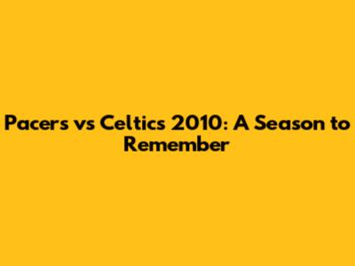 Pacers Vs Celtics 2010: A Season To Remember