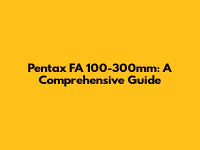 Pentax FA 100-300mm: A Comprehensive Guide