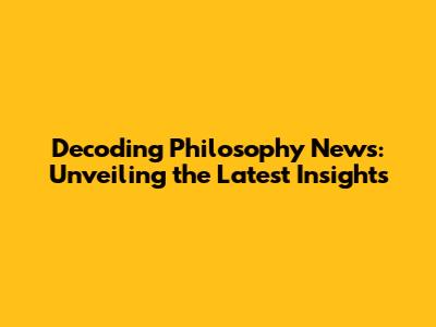 Philosphy News: Decoding The Latest Insights