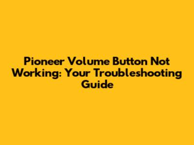 Pioneer Volume Button Problems: Quick Fixes & Troubleshooting