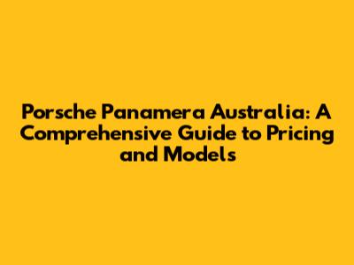 Porsche Panamera Australia: Current Price Range and Models