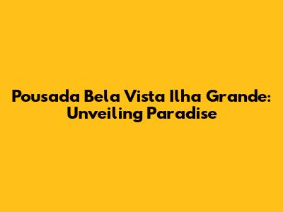 Hey guys! Planning a trip to the stunning Ilha Grande, Brazil? You're in for a treat! This island is a true slice of paradise, with its crystal-clear waters, lush rainforests, and vibrant atmosphere. And if you're looking for the perfect place to stay, you've got to check out Pousada Bela Vista Ilha Grande. This gem offers an unforgettable experience, combining comfort, stunning views, and easy access to all the best spots on the island. Let's dive in and explore everything this amazing pousada has to offer!